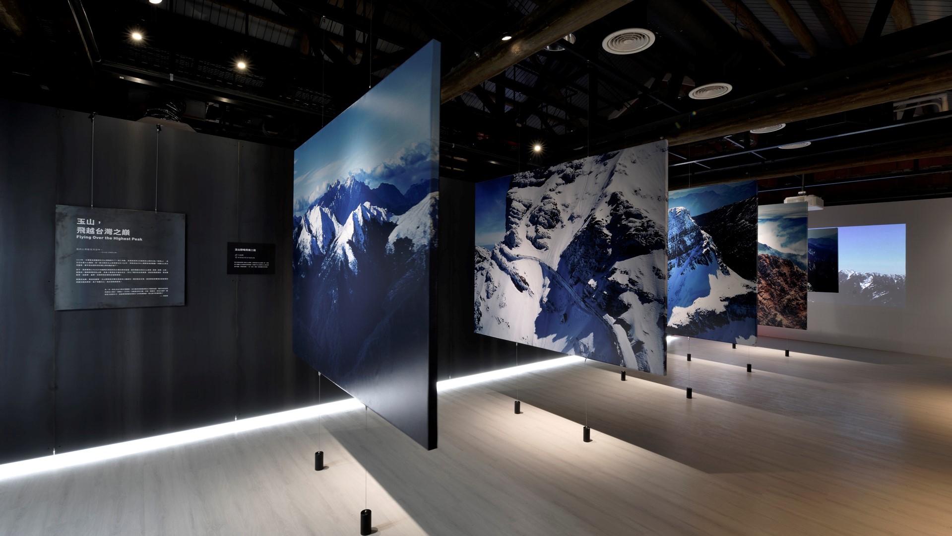 View Above Mountains presented Chi’s aerial images of mountains, and introduced the rich and diverse wealth of Taiwan’s mountains through different forms. In particular, the “corridor of massive projection” and the “VR interactive experience zone” in the exhibition allowed visitors to personally experience the feeling of how Chi had flown in the sky to closely view Taiwan’s variegated mountains through Chi’s eye.