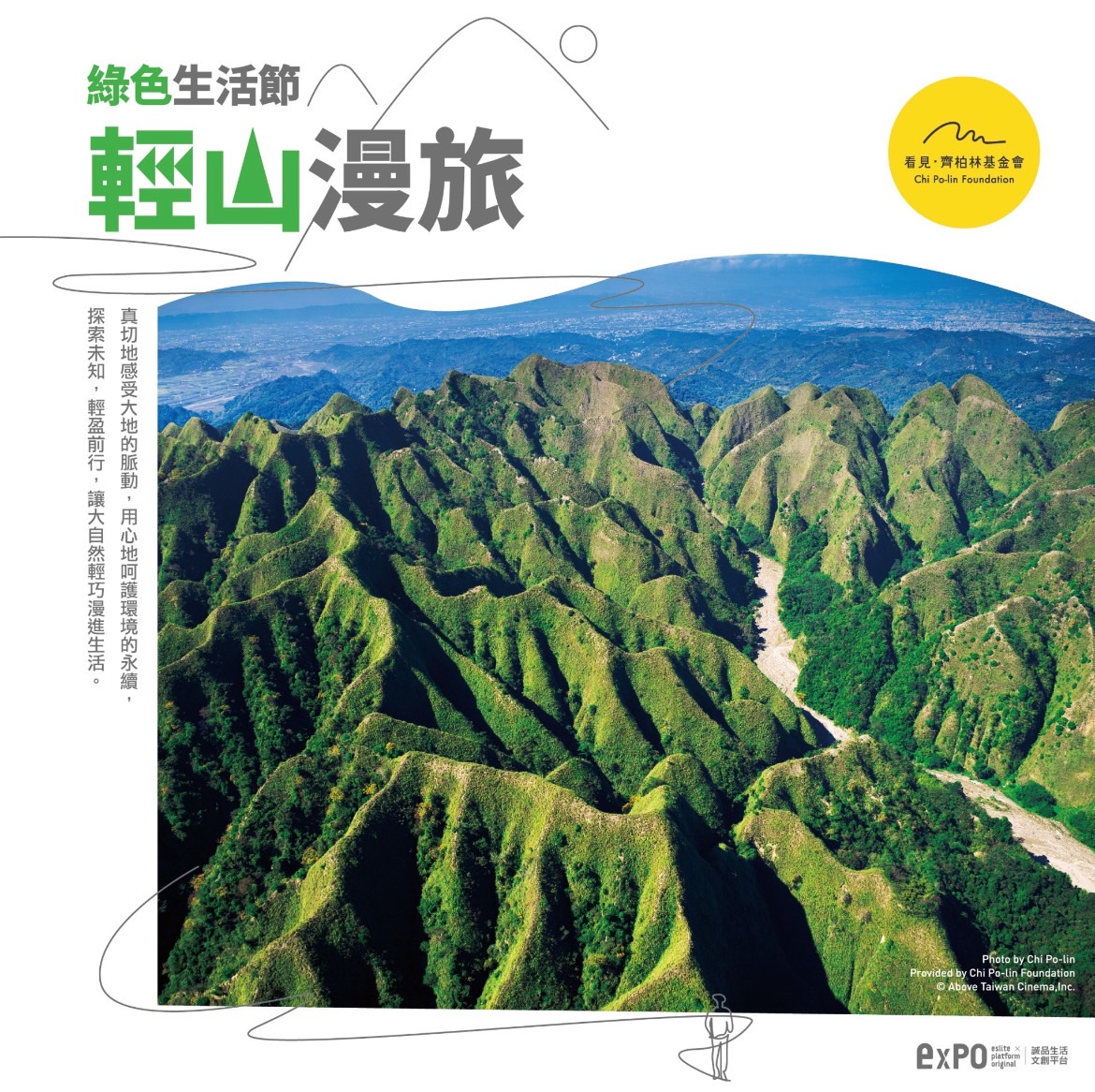 邀請你6/22-6/23至台北流行音樂中心文化館參與「LIVE!享綠生活派對」,我們在一樓市集攤位等你~歡迎你前來感受齊柏林導演的空拍藝術,讓這些美麗的畫面成為你生活的一部分!