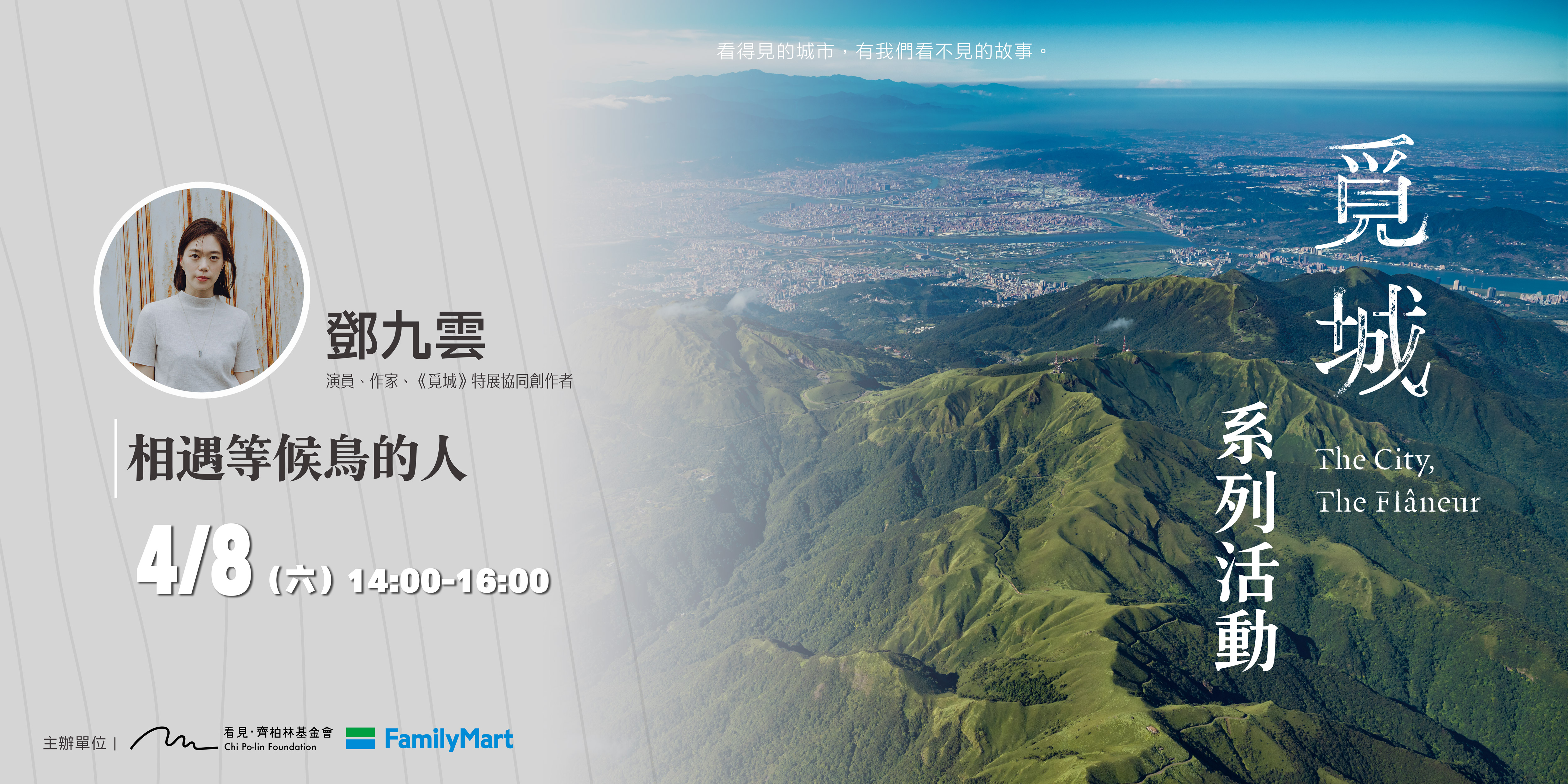 「齊柏林空間」第四檔展特展《覓城》以城市為主題,邀請四位不同領域的協同創作者,以各自的作品與齊柏林導演的空拍影像展開對話。其中,由編導/作家鄧九雲創作的短篇小說「等候鳥的人」貫穿整個《覓城》展,循著故事的軸線,帶大家走進我們內心對「家」的渴望,從文學認識台灣。