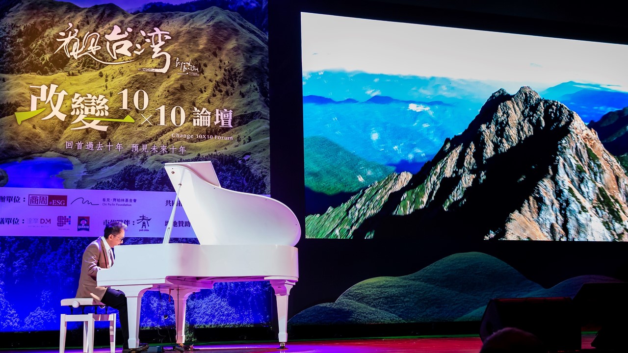 隨著嘩嘩奔騰的水聲響起,大螢幕上,台東利嘉溪上游飛流直下的瀑布濺起一片白霧,在陽光折射下,形成一道美麗的彩虹。畫面一轉,我們隨著齊柏林導演的鏡頭,穿梭立霧溪峽谷、飛越龜山島,搭配從《看見台灣》音樂總監何國杰Ricky老師指尖緩緩流淌的琴音,為「看見台灣.改變10 X 10」論壇揭開序幕,也將現場800位觀眾的記憶,一下拉回到2013年第一次從高空看見台灣的感動。
