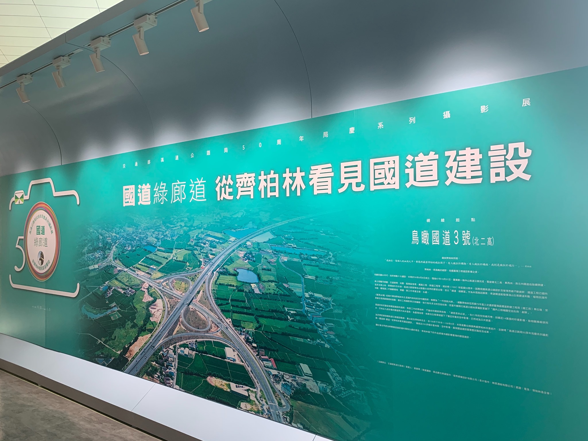 齊柏林導演在交通部國工局任職了21年,拍攝近14萬張珍貴影像,記錄了台灣高速公路的誕生與周遭環境的變遷。適逢高工局50周年,特於國道服務區舉辦巡迴攝影展,期待讓台灣各地用路人同步馳騁在有溫度的文字及影像裡,穿越時空迴廊體會國道興建的辛酸,更藉此關照台灣環境生態、傳遞永續價值。